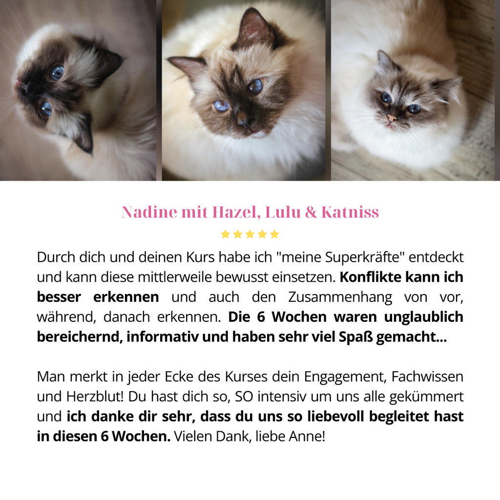 Du wirst in diesem Programm nicht alleingelassen, denn es geht mir nicht nur um das Verhalten deiner Katzen. Es geht auch um dich. Um deine Gelassenheit, deine innere Sicherheit und darum, dass du dich in deinem Zuhause wieder ruhig und handlungsfähig fühlen kannst.