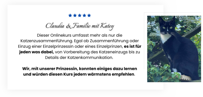 Der praxiserprobte Kurs inkl. 5 Schritte Anleitung zur entspannten Katzenzusammenführung mit 4 Modulen, Video- & Bildmaterial, Bonusmaterial und 6 Monaten Zugang. Sommer-Relaunch & Updates inklusive!
