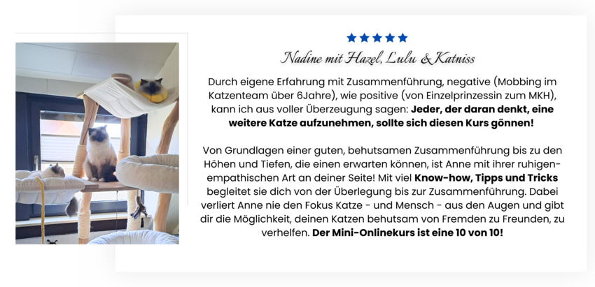 Es schenkt dir Sicherheit in einer unsicheren Phase. Verständnis für jede einzelne Katze. Und einen klaren, liebevollen Weg in ein stabiles, friedliches Miteinander.